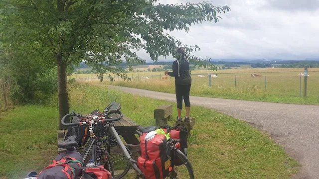 Das Wetter ist durchwachsen, es pinkelt immer mal wieder. Auf dem Campingplatz gab es ohne Vorbestellung keine Baguettes. Also alles zusammenpacken, wenn es was zum Frühstück geben soll.
